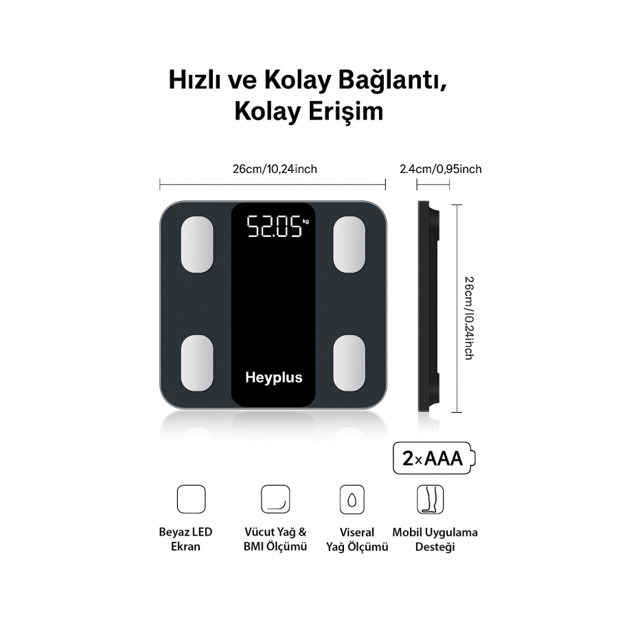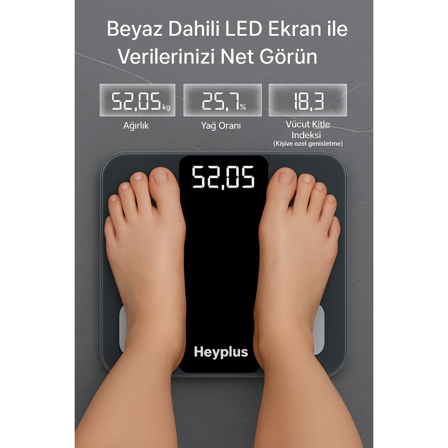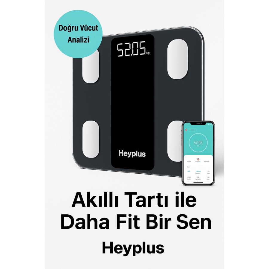 Xiaomi Heyplus Dijital Baskül Yağ Su Kas Vücut Kitle Endeksi Kilo Ölçer Tartı (Xiaomi Distribütörü Cepport Türkiye Garantili)